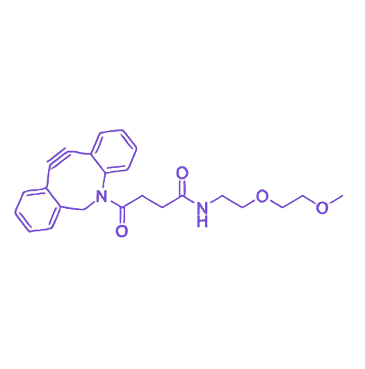 mPEG2-DBCO是一种单端功能化聚乙二醇衍生物,一端为甲氧基(mPEG),另一端为应变炔基二苯并环辛炔(DBCO),兼具优良水溶性与高反应活性,可在无铜催化条件下与叠氮化物(–N₃)发生快速、高选择性的应变促进环加成反应(SPAAC),生成稳定三唑键,特别适用于活细胞、蛋白质等生物体系的正交标记与偶联。 该分子的mPEG2链段仅含两个乙二醇单元,形成极短空间间隔,能有效减少亲水性屏蔽效应,满足空间要求高或表面密度控制严格体系的应用需求。相较于长链PEG衍生物,其反应速率更快,反应位点暴露更充分,是构建小分子探针、表面修饰及聚合物端基功能化的理想选择,且具备优良化学稳定性与低自反应倾向,保障实验操作的可靠性。 mPEG2-DBCO凭借DBCO端的高反应性与mPEG端的生物相容性平衡,在生物正交化学标记、纳米颗粒表面修饰、药物递送体系构建、蛋白质定点标记、荧光探针偶联等领域具有重要应用价值,为生物材料功能化和精密分子工程提供关键支持。产品可提供高纯度、低残留溶剂规格,并支持不同分子量及端基结构的定制服务,以满足科研与产业化的多样化需求。