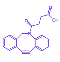 CQDs-DBCO 是一类通过 DBCO(二苯并环辛炔)基团对 碳量子点(CQDs)进行表面修饰得到的功能化纳米材料,其整合了碳量子点的优异光学性能与 DBCO 基团的 无铜点击化学活性,为生物医学及材料科学领域提供了多功能化工具。 碳量子点作为基底材料,具备良好的 荧光特性、生物相容性及化学稳定性,可作为光学示踪或载体平台;DBCO 基团通过共价键修饰于碳量子点表面,在生理条件下能与含 叠氮化物的目标分子发生高效、特异性的 [3+2]环加成反应,该反应无需铜离子催化,有效避免了金属离子对生物体系的潜在毒性。 此功能化设计使 CQDs-DBCO 在保留碳量子点固有荧光成像能力的同时,赋予其靶向偶联生物分子(如抗体、多肽、核酸)或材料表面改性的能力,可广泛应用于生物探针构建、细胞标记、药物递送系统及功能材料合成等场景。