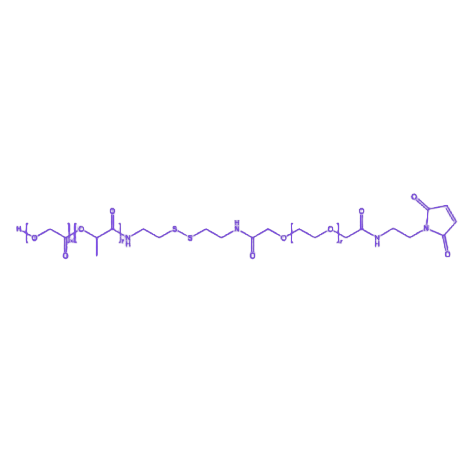 PLGA-SS-PEG-MAL是一种集成多种功能性模块的生物可降解聚合物复合材料,由聚乳酸-羟基乙酸共聚物(PLGA)、双硫键(SS)、聚乙二醇(PEG)和马来酰亚胺(MAL)通过化学连接构成,具备环境响应性、生物相容性及功能化修饰能力,在生物医学领域具有广阔应用前景。
