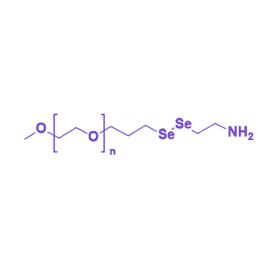 mPEG-Se-Se-NH2 是一种结构功能一体化的聚乙二醇衍生物,通过整合甲氧基聚乙二醇(mPEG)、二硒键(Se-Se)与氨基(NH2)三大核心功能单元,在生物医用材料领域展现出独特应用价值。其设计理念在于利用各组分的协同效应,实现材料性能的动态调控与多功能拓展,为药物递送、响应性材料及生物传感等领域提供创新性解决方案。 mPEG组分赋予分子优异的水溶性与生物相容性,可显著降低材料的免疫原性,在药物递送系统中能有效保护负载药物,减少非特异性相互作用,确保药物分子稳定循环并靶向富集于病灶部位。该特性使其成为理想的药物载体修饰材料,有助于提升治疗剂的体内传输效率与安全性。 分子结构中的二硒键作为动态响应单元,具备对氧化-还原微环境的特异性敏感特性。在高浓度活性氧(ROS)或谷胱甘肽(GSH)等还原性物质存在时,二硒键可发生可逆断裂与重组,这种特性使材料在智能药物控释系统中实现按需释放:在正常生理环境中保持结构稳定,当接触病变组织的异常氧化还原微环境时,通过化学键断裂触发药物快速释放,提高局部治疗浓度并降低全身毒副作用。此外,二硒键的动态可逆性也为构建刺激响应型生物材料(如自修复水凝胶、智能涂层)提供了关键设计基础。 末端氨基(-NH2)的引入为分子提供了丰富的化学反应位点,可通过酰胺化、席夫碱反应等与羧基、醛基等功能基团高效偶联。这一特性使其能够便捷地接枝多肽、抗体、荧光探针等生物活性分子,实现材料的功能化修饰;同时可用于构建纳米载药系统的表面功能涂层,调控载体的靶向性、细胞摄取效率及体内循环行为,进一步拓展了其在生物医学工程领域的应用边界。