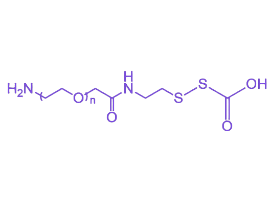 NH2-PEG-SS-COOH 是一种整合了氨基(-NH2)、聚乙二醇(PEG)链段、二硫键(-SS-)与羧基(-COOH)的多功能化合物,其结构设计赋予了材料在生物医学领域的多重应用潜力。 聚乙二醇链段作为核心连接单元,具备优异的<亲水性>与<生物相容性>:亲水性可显著提升化合物在水性介质中的分散性与溶解度,生物相容性则有效降低生物体内的免疫原性风险,同时为不同功能基团提供柔性连接骨架,确保各组分协同作用。 <二硫键>作为环境响应型结构单元,对生物体内氧化还原梯度具有高度敏感性。在细胞内高谷胱甘肽等还原性环境中,二硫键可发生断裂,这种特性使其成为智能递药系统的关键组件,可通过环境刺激触发负载分子(如药物、探针)的定点释放。 <羧基>与<氨基>分别作为化学反应活性位点,可通过酰胺化、酯化等反应实现与生物分子(如蛋白质、多肽)或载体材料的共价偶联,为构建靶向递送系统、表面功能化修饰等应用提供模块化组装基础。
