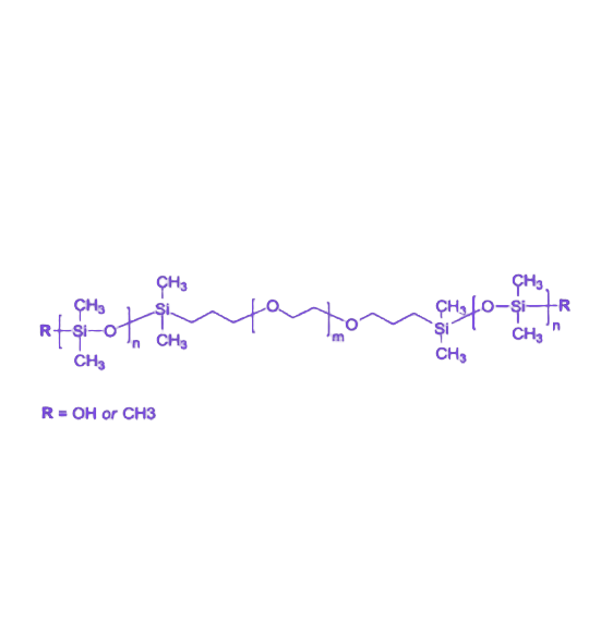 PDMS-b-PEO-b-PDMS 是一种由两端聚二甲基硅氧烷(PDMS)与中间聚氧乙烯(PEO)链段构成的 ABA 型三嵌段共聚物,其独特的分子结构赋予材料兼具硅氧烷的高度柔性、疏水性与低表面能,以及 PEO 的亲水性、可水化能力与生物相容性,在医用材料、界面工程、软物质物理学、纳米药物递送及表面防污等领域展现出独特应用价值。