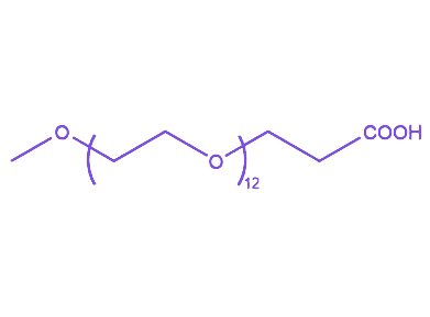 mPEG550-COOH是一种具有重要应用价值的聚乙二醇衍生物,其由甲氧基封端的聚乙二醇链段与末端羧基(-COOH)构成,兼具良好的亲水性与反应活性,在药物化学、生物医学工程、材料科学等领域展现出显著应用潜力。 聚乙二醇(PEG)作为基础骨架,凭借出色的生物相容性、低免疫原性及良好的水溶性,为mPEG550-COOH提供了核心性能支撑。甲氧基封端的聚乙二醇链段赋予该化合物优异的亲水性,能够有效降低分子在生物体内的非特异性吸附,延长其在体内循环中的存在时间,同时提供空间位阻效应,保护与之连接的功能基团或分子免受降解。 末端的羧基(-COOH)是mPEG550-COOH的关键反应位点,使其具备丰富的化学反应活性。羧基可与含氨基(-NH₂)的分子发生缩合反应形成稳定的酰胺键,也可在催化剂作用下与羟基(-OH)发生酯化反应,这种特性使其能够与多种生物分子或材料表面进行高效偶联。 在应用层面,mPEG550-COOH在药物研发中可通过羧基与药物分子或载体连接,构建药物递送系统,利用聚乙二醇的长循环特性改善药物的药代动力学性质,提高药物的生物利用度和稳定性。在生物材料领域,该化合物可通过羧基与材料表面的活性基团反应,引入亲水性聚乙二醇链,显著提升材料的生物相容性,减少蛋白质吸附和细胞黏附,降低材料引发的免疫反应风险,拓展生物材料在植入器械、组织工程等领域的应用前景。