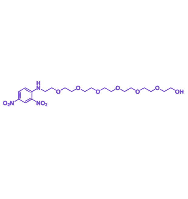 DNP-PEG7-OH 是由 2,4-二硝基苯基(DNP) 基团与七聚乙二醇(PEG7)链段连接构成的羟基端 PEG 衍生物,兼具芳香亲电子结构与亲水柔性链的双功能特性,可作为生物偶联、界面调控及小分子探针设计的关键构件。 DNP 作为电子缺陷芳环,在生物识别、蛋白质修饰及亲核反应靶向设计中具有重要意义;PEG7 链段赋予分子良好的水溶性、构象柔性及蛋白吸附抑制能力,其长度既能提供足够水化层以提升生物相容性,又可避免过度链缠结,保障偶联体系的均一性与可重复性。末端一级羟基依托 PEG 链段的可修饰性,可通过酯化、碳酸酯化、氨基化或 NHS 活化等方式实现进一步官能化,生成高反应活性中间体,进而与肽、聚合物、脂质及多种纳米材料表面发生定向偶联。 该分子双亲结构可在无机纳米颗粒、聚合物微粒、脂质体及二维材料表面形成稳定均一的柔性间隔臂,有效提高生物分子间距并减少空间位阻效应。DNP 基团可参与特异性识别或构建电子给受体系,常用于响应型探针构建、亲核反应机制研究模型及酶促反应示踪体系;同时,DNP 标签能与抗-DNP 抗体发生特异结合,实现定量检测、成像示踪及免疫分析(如 ELISA、流式细胞术)等应用。 产品通常具有良好的空气与光照稳定性,但 DNP 芳环在强还原环境中可能发生电子结构变化,应避免接触高浓度还原剂。建议在−20°C 干燥避光条件下储存,操作时使用无水溶剂以维持羟基反应效率。使用过程中需注重计量准度、溶剂纯度及反应体系 pH 控制,以确保最终偶联产物的结构完整性和实验重现性。