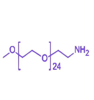 分子结构由25个乙二醇单元形成线性PEG主链,末端分别连接甲氧基和氨基官能团。甲氧基作为空间稳定基团,可抑制分子链的非特异性反应;氨基(-NH₂)为核心反应位点,能与羧基(-COOH)、醛基(-CHO)、活性酯(NHS酯等)发生酰胺化、还原胺化等共价反应,实现对目标分子的定点修饰。