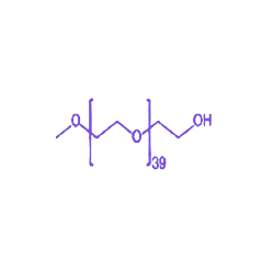 在生物医学领域,mPEG40-OH常作为功能性聚乙二醇衍生物的合成前体,用于构建药物递送载体,通过化学修饰可有效改善药物分子的水溶性,延长其在体内的循环时间,同时降低药物对正常组织的毒副作用。在材料科学领域,该化合物可用于表面修饰改性,通过接枝到材料表面提升其抗蛋白质吸附能力(抗污性)及与生物系统的相容性,拓展生物医用材料的应用场景。