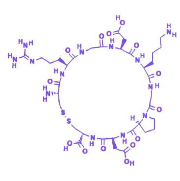NHS-PEG-iRGD 是一种由 NHS 酯、聚乙二醇(PEG)链段和 iRGD 环肽构成的功能性化合物,具备生物分子修饰、水溶性增强、靶向递送等核心特性,在生物医学领域具有重要应用价值。 该化合物一端的 NHS(N-羟基琥珀酰亚胺)酯具有高化学活性,在 pH 7-8.5 的弱碱性缓冲溶液条件下,可与生物分子(如蛋白质、多肽、小分子胺等)中的 伯胺基团(-NH₂)快速反应并形成稳定的 酰胺键,适用于生物分子的高效修饰与连接。中间的 聚乙二醇(PEG)链段赋予化合物出色的 水溶性和 生物相容性,既能提升其在水溶液中的溶解能力以确保在生物体系中的均匀分散与运输,又能有效降低免疫原性,减少被免疫系统识别和清除的风险,从而增强分子稳定性。另一端的 iRGD 环肽(序列为 CRGDKGPDC)是由 9 个氨基酸组成的八元环肽,具有双重功能:一方面可特异性结合肿瘤细胞表面的 整合素受体(如 αvβ3、αvβ5 等)实现靶向识别;另一方面在肿瘤微环境中经蛋白酶切割后,能暴露出新的序列以进一步增强穿透肿瘤组织的能力。 基于上述结构特征,NHS-PEG-iRGD 在 肿瘤靶向治疗、药物递送系统构建及 生物成像等领域展现出关键作用,为生物医学研究与应用提供了高效工具。