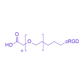 该分子通过cRGD环肽序列特异性识别肿瘤细胞表面高表达的整合素受体(如αvβ3),实现药物在病变部位的精准富集;PEG链段的引入可显著降低材料的免疫原性与细胞毒性,延长其在血液循环中的半衰期;终端羧基则为后续偶联药物分子、纳米载体或荧光探针提供丰富的反应位点,支持构建多模态诊疗一体化系统。其理化性质可通过调控PEG分子量(常用范围500-10000 Da)与cRGD修饰比例进行定制化调整,适用于脂质体、纳米粒、树枝状大分子等多种载药体系的表面功能化修饰,在肿瘤靶向治疗、分子影像及生物检测领域具有重要应用价值。