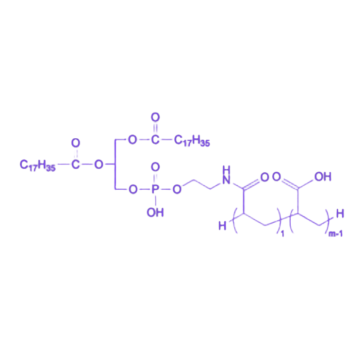 1,2-二硬脂酰基-sn-甘油-3-磷酸乙醇胺-聚丙烯酸(DSPE-PAA)是一种具有多领域应用价值的功能性化合物,其分子结构中聚丙烯酸(PAA)片段通过丰富的羧基官能团赋予材料独特的理化特性与反应活性,同时显著提升整体分子在水相体系中的溶解与分散能力。
