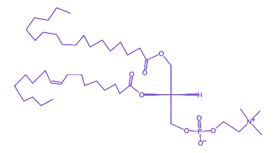 1-硬脂酰-2-油酰磷脂酰胆碱(SOPC)是一种天然存在于生物膜中的磷脂化合物,由亲水性的磷酸胆碱头部与两条疏水性酰基链构成,具备优异的生物相容性。其分子结构中,硬脂酰基赋予膜结构稳定性,油酰基则通过引入不饱和双键增加膜的流动性,使人工构建的脂质体系更接近生理条件下真实细胞膜的动态特性。