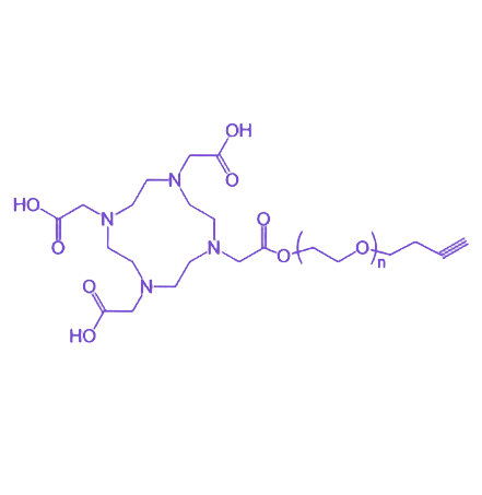 DOTA-PEG-Alkyne 是一种整合了 DOTA 大环配体、PEG 链段与 炔基 反应基团的多功能化合物,通过协同发挥各组分特性,在生物医学及材料科学领域展现出重要应用价值。其核心结构设计使其既能实现金属离子络合,又具备亲水性调节及高效生物偶联能力,为靶向成像、药物递送及功能材料构建提供关键连接工具。