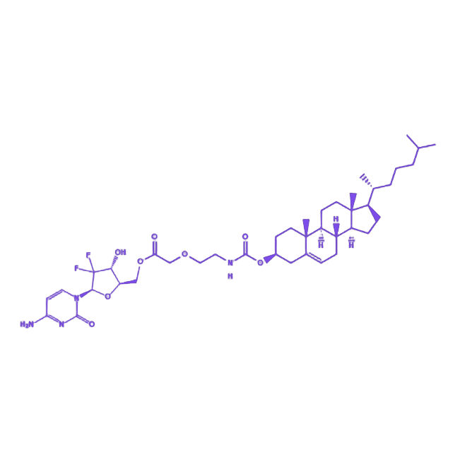 Cholesterol-PEG-GEM是一种由胆固醇、聚乙二醇(PEG)与吉西他滨(GEM)通过化学偶联形成的多功能复合化合物,其设计核心在于通过胆固醇的膜亲和性与PEG的生物相容性协同优化吉西他滨的体内递送效率,同时保留其抗增殖活性,为肿瘤治疗领域提供高效、低毒的新型药物递送策略。