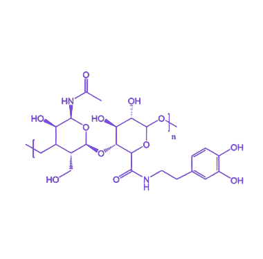 该聚合物在结构上包含透明质酸的糖胺聚糖链段与多巴胺的苯环结构单元,形成具有复杂空间构型的高分子体系。其化学性质呈现复合优势,透明质酸赋予的生物相容性与水合作用确保了材料的生物安全性和保湿效能,而多巴胺的引入则带来显著的自组装特性和抗氧化功能,这种协同作用使DA-HA在生物医学应用中表现出独特优势。