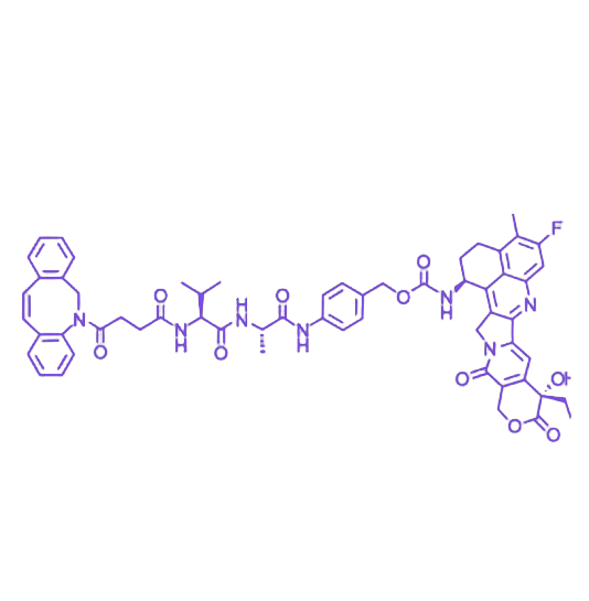 DBCO-Val-Ala-PAB-Exatecan 是一种由 DBCO 点击柄、Val-Ala 二肽连接子、PAB 自降解连接子及末端 exatecan 药物构成的药物-连接子偶联体,其设计核心为通过溶酶体蛋白酶切割释放拓扑异构酶 I 抑制剂,适用于抗体偶联药物(ADC)等靶向递送系统的构建。