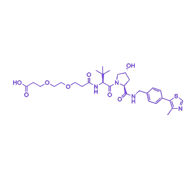 应用过程中需重点关注以下方面:末端羧酸基团在偶联反应中的活性状态,确保其未被保护或失活;PEG3 链接子对分子整体亲水/疏水平衡的调控作用,需根据具体应用场景优化;AHPC 的 (S,R,S) 构型对 VHL 蛋白结合亲和力的直接影响,避免因构型改变导致功能丧失。该模块凭借其结构设计的合理性与性能的综合优势,成为 PROTAC 分子设计与合成中连接灵活、性能可靠的标准 VHL 招募端构建块。