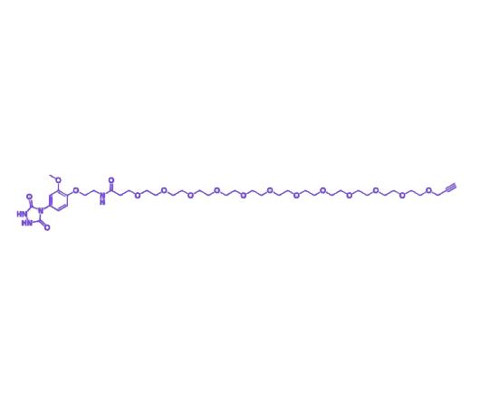 该化合物采用双反应位点协同设计,其中PTAD作为高效亲双烯体可参与Diels-Alder反应,炔基则具备优异的Click化学反应活性,实现对目标分子的精准双位点修饰。反应条件温和,可在室温或轻微加热(通常不超过50℃)条件下完成,有效避免生物活性分子在修饰过程中的结构破坏。PEG12间隔臂链长适中,既保证分子链段的柔性以减少空间位阻,又能通过精准的间距调节优化生物分子相互作用,尤其适用于蛋白质、抗体等大分子体系的功能化修饰。