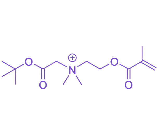 TBDMAEMA,化学名称为2-(叔丁氧基)-N-(2-甲基丙烯酰氧基乙基)-N,N-二甲基-2-氧代乙铵,是一种具备合成化学智慧与功能设计前瞻性的“受保护”功能性单体。其分子结构融合三个关键部分:可自由基聚合的甲基丙烯酸酯基团、叔胺季铵化的阳离子中心,以及连接在铵根上的叔丁氧羰基保护基,作为实现“功能按需、原位激活”的核心分子工具,为先进高分子材料在生物医学、传感和纳米技术等前沿领域的创新应用提供关键化学支撑。