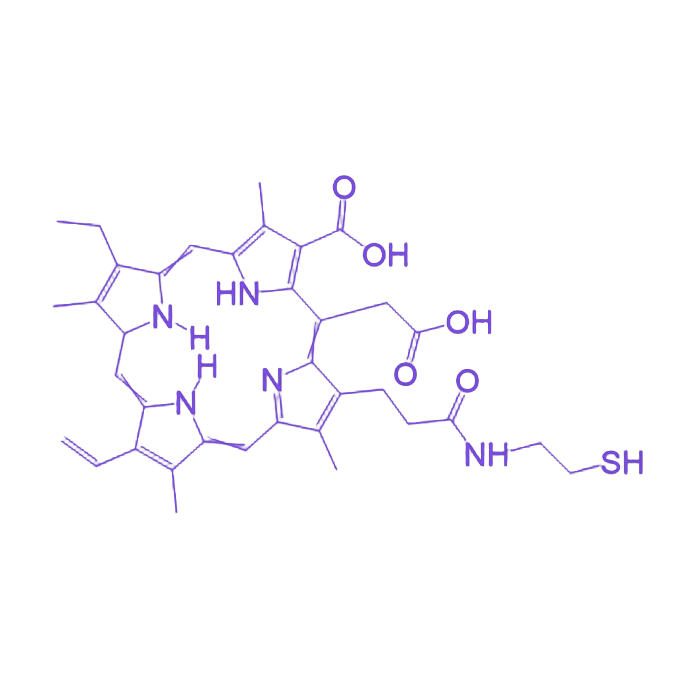 Ce6-SH作为二氢卟吩e6的重要衍生物,既保留母体高光敏活性,可在特定波长光照下高效产生单线态氧,通过光动力机制诱导目标细胞消除,又因引入巯基官能团赋予化学活性,能与含马来酰亚胺、二硫键等基团的生物分子或材料发生特异性共价结合,为生物成像、化合物传递系统等领域提供多元应用基础。 该化合物微溶于水,化学稳定性受光、热及氧气影响易变质。巯基的反应活性使其可实现交联、偶联及探针标记等功能,助力目标部位的精准判断与干预;通过聚乙二醇修饰可显著提升其体内循环时间与结构稳定性,进一步拓展其在生物医学领域的应用潜力。
