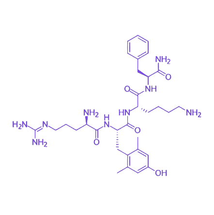 SS-31 多肽是一种由四个氨基酸组成的短肽,其氨基酸序列为 D-Arg-2′,6′-dimethyltyrosine-Lys-Phe-NH₂。作为一种 细胞穿透肽,它能够特异性地定位到线粒体,这一靶向能力使其在调节线粒体功能方面具有独特优势。