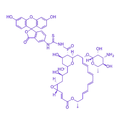 FITC-纳他霉素是通过化学偶联技术将荧光素异硫氰酸酯(FITC)与天然抗真菌药物纳他霉素结合形成的功能性化合物,该产品同时保留了母体药物的生物活性与荧光示踪特性,为抗真菌机制研究及药物递送可视化提供了工具。 FITC作为经典荧光标记基团,在490nm激发光照射下可发射525nm绿色荧光,其荧光量子产率高、光稳定性良好,能够实现对目标分子的高灵敏度追踪;纳他霉素来源于链霉菌发酵产物,属于多烯大环内酯类抗真菌剂,通过靶向真菌细胞膜麦角甾醇发挥抑菌作用,对酵母菌、霉菌等具有广谱抑制活性。 该偶联物通过酰胺键或硫脲键等稳定化学结构连接FITC与纳他霉素分子,在保持纳他霉素对真菌细胞膜的靶向结合能力的同时,利用FITC的荧光特性可通过荧光显微镜、流式细胞术等技术手段,实时观察药物在生物样本中的分布、内化过程及作用位点,适用于抗真菌药物筛选、真菌感染模型构建及亚细胞水平作用机制研究等场景。