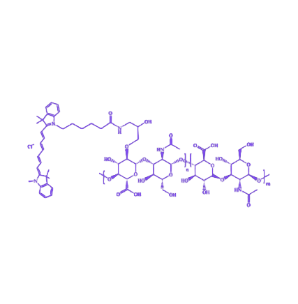 CY7-HA(七甲川花菁染料-透明质酸)是一种由荧光染料CY7与透明质酸偶联形成的功能性生物材料,兼具药物载体与生物标记双重特性。其核心优势在于通过透明质酸的生物相容性和可降解性,实现对目标化合物的高效负载与保护,同时依托CY7的荧光特性提供可视化追踪能力,在生物医学及药物研发领域具有重要应用价值。 透明质酸作为天然高分子多糖,为材料提供了优异的生物相容性和生物可降解性,可作为化合物的理想载体。通过结构设计,CY7-HA能够对搭载的化合物进行有效封装,显著提升其在生物体内的稳定性,避免因酶解、氧化等因素导致的快速降解,从而延长化合物的半衰期,提高生物利用度及作用时间。 CY7荧光基团的引入赋予材料独特的示踪功能,可通过荧光标记技术实时监测化合物在生物体内的吸收、分布、代谢及排泄过程,为药物研发提供直观的可视化研究手段,助力阐明药物作用机制及优化给药方案。