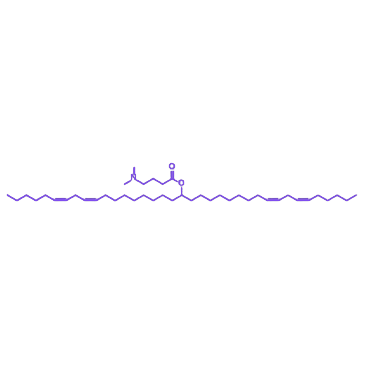 DLin-KC2-DMA 是生物医化合物领域中一种具有重要应用价值的 可电离脂质,在脂质纳米粒(LNP)递送系统中发挥关键作用,尤其在 mRNA vaccine和核酸化合物递送方面表现突出,为基因和vaccine开发提供重要技术支持。 其核心特性体现在pH响应性电离行为:在生理pH条件下呈中性,有利于脂质纳米粒的稳定形成;在酸性环境中则发生质子化而带正电荷,能够与带负电荷的核酸高效结合,实现对核酸的包裹与递送。化学结构上,该脂质包含不饱和烃链和可电离的氨基基团,这一分子设计赋予其良好的生物相容性和膜融合能力。 在脂质纳米粒配方中,DLin-KC2-DMA 通过优化递送系统的理化性质,有助于提高核酸化合物的稳定性、靶向性和细胞内摄取效率,从而增强基因递送和vaccine的生物利用度。