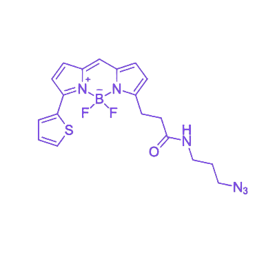 BDP 558/568-N3(BDP 558/568-叠氮化物)是一种融合无铜点击化学活性与近橙红色荧光性能的科研级探针,以紫红色固体粉末形态存在,核心优势在于叠氮基团的特异性反应与低光毒性荧光特性,适用于生物分子特异性标记、活细胞成像及多色分析,尤其适合铜离子敏感样本的无毒性标记。 化学与物理特性 分子量约为450.25 g/mol,纯度≥95%,储存需密封避光并置于-20℃干燥环境,粉末形态可稳定保存2年,溶液经分装后于-80℃条件下可储存3个月。荧光激发/发射波长分别为558 nm和568 nm,荧光量子产率达0.89,摩尔消光系数为8.4×10⁴ M⁻¹cm⁻¹,亮度显著高于传统罗丹明类染料,光稳定性良好,支持长时间动态成像实验需求。 反应性能 分子结构中的叠氮基团可通过SPAAC反应与炔基分子高效结合,该反应无需铜离子催化,完全规避金属离子对活细胞的毒性影响,反应条件温和,在室温及pH 7.0-8.0范围内即可高效进行,且无明显非特异性结合。 实验兼容性 溶解性适配多种实验体系,DMSO储备液可直接稀释至含乙腈的PBS缓冲液中使用,无需复杂助溶步骤。对神经元、干细胞等敏感细胞类型展现出良好兼容性,适用于活体细胞标记场景。 应用价值 作为生物医学研究中点击化学荧光标记的理想工具,其高特异性、低毒性与优异荧光性能的组合,为动态生物学过程监测、多色荧光成像及铜离子敏感样本的精准标记提供了可靠解决方案。