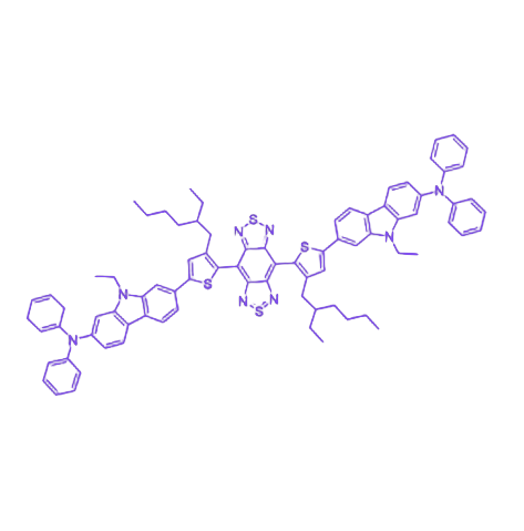 苯并噻二唑染料 DCTBT(Diketopyrrolopyrrole-carbazole-thiadiazole-based dye,化学名称 4,7-二(噻吩-2-基)-2,1,3-苯并噻二唑)是一类以 苯并噻二唑(BT) 为电子受体核心的高共轭有机功能材料。其分子设计采用典型的“D-A-D”或“D-A-π-A”型骨架结构,通过共轭链将苯并噻二唑单元与强电子给体(如噻吩、咔唑或二苯胺)连接,可有效促进 分子内电荷转移(ICT),从而实现强烈可见光吸收与高光致发光效率。 DCTBT 具有优异的光物理特性,吸收光谱主要分布在 500-700 nm 范围,通过分子结构调控可进一步扩展至近红外区域。该材料展现出高摩尔吸收系数、窄能带宽度及良好的光稳定性,同时因苯并噻二唑骨架的强电子吸引能力,能显著改善共轭体系的 电子迁移率 和载流子传输平衡性。化学稳定性方面,DCTBT 可耐受多次热退火或光照循环,具备良好的环境适应性。 通过化学修饰实现性能调控是 DCTBT 的重要特征,例如在苯环或噻吩单元引入氟、氰基等吸电子基团,或烷基侧链等空间位阻基团,可精准调节分子能隙、前线轨道能级及薄膜堆积形貌,进而优化器件性能。目前,DCTBT 已广泛应用于 有机太阳能电池(OSC)、有机发光二极管(OLED)、有机场效应晶体管(OFET)及荧光探针等领域,是构建高性能共轭聚合物(如 PCDTBT)的关键单元,也是新一代低带隙共轭材料的核心研究方向之一。