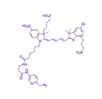 APDye680-Picolyl-N3是一款适配点击化学的近红外荧光探针,以深紫色固体粉末形态存在,核心优势在于Picolyl-N3基团的点击反应活性与近红外荧光特性的协同作用,为生物医学研究提供高特异性、低背景的荧光标记解决方案。 该探针分子量约822.95 g/mol,纯度≥95%,通过叠氮基团(-N₃)与炔基的CuAAC反应 实现生物分子标记,在铜离子催化及还原剂(如抗坏血酸钠)存在条件下,于室温、pH 7.0-8.0的温和环境中形成稳定三唑环,反应特异性高且无副产物干扰,需注意排除反应体系中的叠氮化物抑制剂以确保反应效率。其荧光性能表现为激发波长约678 nm、发射波长700 nm,处于生物组织“光学窗口” 范围内,可有效穿透深层组织,自发荧光干扰较可见光染料显著降低,信噪比优势明显,光稳定性良好。 在应用场景中,该探针适用于炔基修饰生物分子的特异性标记,尤其在代谢标记、活体成像等研究领域展现出独特优势,标记后需通过透析或凝胶过滤等方法去除游离探针,以保证实验结果的准确性。储存条件方面,固体状态需密封避光并置于-20℃干燥环境,溶液状态则应分装后-80℃冻存,避免反复冻融超过3次。作为科研级试剂,其综合性能使其成为生物医学研究中点击化学荧光标记 的优选工具。