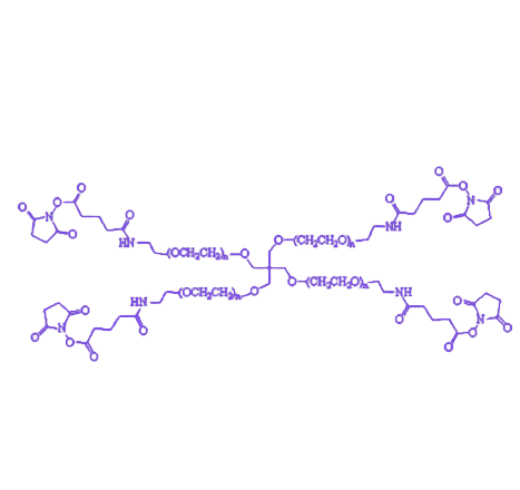 4-Arm PEG-GAS是一种具有四臂星形结构的聚乙二醇衍生物,其分子设计融合了高效反应位点、优异生物相容性与稳定共价偶联特性,为生物分子修饰和材料表面工程提供可靠解决方案。该化合物以四臂聚乙二醇为骨架,末端修饰戊二酰胺酸琥珀酰亚胺酯(GAS)基团,兼具多价态反应能力与温和高效的偶联性能。