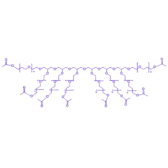 8-arm-PEG-Acetic Acid 是一种具有多臂结构的聚乙二醇衍生物,其分子设计以中心核为基础延伸出八个 PEG 臂,每个臂末端均修饰有乙酸基团(-COOH),这种独特构型使其兼具良好的水溶性、生物相容性与高反应活性,可广泛应用于生物分子修饰及材料功能化领域。 该化合物的分子结构由中心核与八个 PEG 臂构成,末端的乙酸基团赋予其关键反应特性。聚乙二醇(PEG)链段提供优异的亲水性和生物相容性,可减少修饰后生物分子的免疫原性;多臂结构则通过提供多个反应位点,实现与多个目标分子的同时偶联,提升修饰效率;而末端 -COOH 基团具有高反应活性,能与含氨基、羟基等基团的化合物发生酰胺化、酯化等化学反应,从而实现对蛋白质、多肽、纳米材料等的精准功能化修饰。