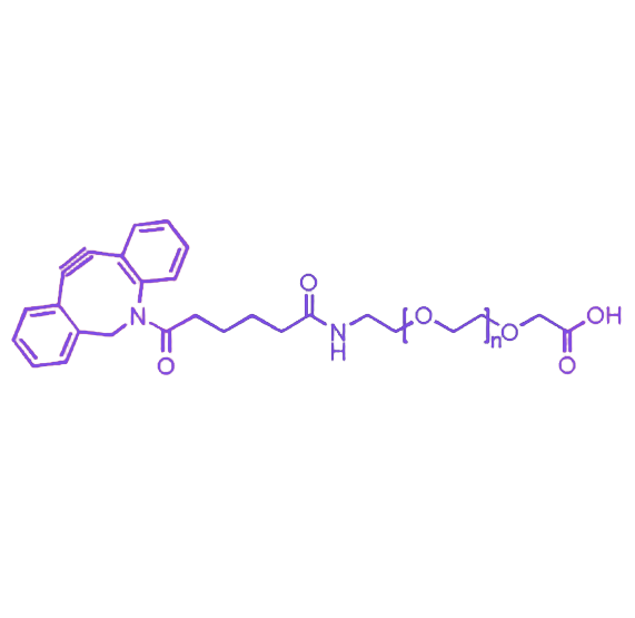 DBCO-PEG-acid(二苯基环辛炔-聚乙二醇-羧酸)是一类融合DBCO基团PEG链段羧酸基团的功能性化合物,凭借其独特的结构设计在生物偶联、材料修饰等领域展现出显著优势。其分子结构赋予的多重反应特性与生物相容性,使其成为生物医学及材料科学研究中的重要工具分子。