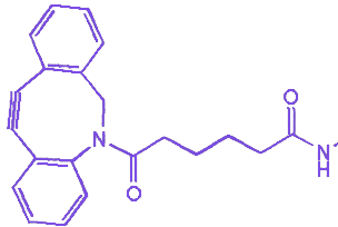 Alexa Fluor 647 DBCO是由Alexa Fluor 647荧光染料与DBCO基团共价结合的功能性化合物,兼具优异的荧光性能与生物正交反应活性,广泛应用于生物分子标记、成像分析及动态过程追踪等领域。 该化合物的Alexa Fluor 647组分具有明亮且光稳定的远红色荧光特性,其激发波长适配633nm激光线,发射信号在成像系统和流式细胞仪中表现出高信噪比与稳定性,可满足高分辨率生物样品检测需求。此外,该荧光基团可通过与特定物质(如金属离子)的相互作用改变荧光强度(淬灭或增强),具备潜在的分析检测应用价值。 其DBCO基团保留了优异的生物正交反应活性,能在水溶液环境中与叠氮化物(-N₃)发生高效的应变促进1,3-偶极环加成反应(无铜点击反应)。该反应具有反应速率快、选择性高、生物相容性好等特点,可在生理条件下实现对活细胞及生物体内叠氮标记生物分子(如蛋白质、核酸、糖链等)的特异性荧光标记,且不会干扰生物体系的正常生理功能。 通过将Alexa Fluor 647的荧光示踪能力与DBCO的生物正交反应特性相结合,该化合物可用于精准追踪生物分子在细胞内的定位、动态迁移及相互作用,为生命科学研究中的蛋白质组学分析、细胞信号通路研究、疾病标志物检测等提供可靠的技术工具。