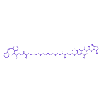 PC DBCO-NHS 是一款集光响应特性与双功能反应活性于一体的点击化学试剂,其核心结构包含二苯并环辛炔(DBCO)基团、光可降解间隔臂和 N-羟基琥珀酰亚胺酯(NHS)基团,凭借“光控可逆-准确偶联”的独特性能,成为生物医学领域动态调控研究的核心工具。