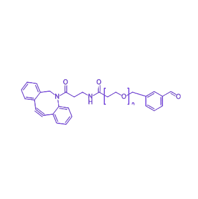DBCO-PEG-Benzaldehyde 是一种整合了 DBCO(二苯基环辛炔)基团、PEG(聚乙二醇)链段与苯甲醛基团的多功能化合物,其独特的分子结构赋予了在生物偶联、药物递送、材料修饰及纳米技术等领域的广泛应用潜力。
