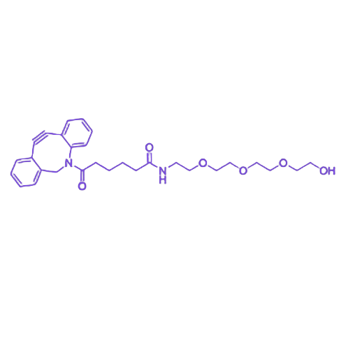 OH-PEG4-DBCO(Hydroxy-PEG4-DBCO)是一种双功能化PEG衍生物,一端为羟基末端,另一端为二苯并环辛炔(DBCO)活性基团,核心由四单元聚乙二醇(PEG₄)构成柔性亲水间隔链,兼具优良生物相容性与化学可操作性,适用于生物偶联及复杂生物体系中的分子修饰。