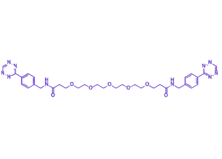 该试剂核心结构由两个相同的四嗪基团构成,通过PEG5亲水间隔臂实现共价连接。四嗪基团作为反应活性中心,能在生理条件下与TCO发生高效环加成反应,其反应速率特性满足快速标记实验需求。PEG5链段不仅提升分子水溶性,还为双四嗪基团提供空间间隔,有效维持各反应位点的独立活性。