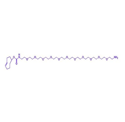 化学结构由三部分组成:一端为TCO基团,作为顶级生物正交反应模块,可与四嗪发生逆电子需求狄尔斯-阿尔德(IEDDA)反应,二级速率常数达10⁴-10⁵ M⁻¹s⁻¹,该反应无需金属催化剂,能在生理条件下实现无干扰快速偶联;中间链段为PEG11,具备“准确化功能平衡”优势,相比中短链PEG(PEG1-PEG8),更长链长可顶级提升偶联产物的水溶性与生物相容性,极致降低免疫原性,延长体内循环半衰期;相比更长链的PEG12,其空间位阻更优,能减少对生物分子活性位点的遮挡,适配更多空间敏感型修饰场景,同时避免过长链引发的细胞摄取效率轻微下降问题;末端为伯氨基,具备灵活反应活性,在EDC、DCC等活化剂作用下,可与羧基、NHS酯形成稳定酰胺键,适配多类型分子修饰需求。