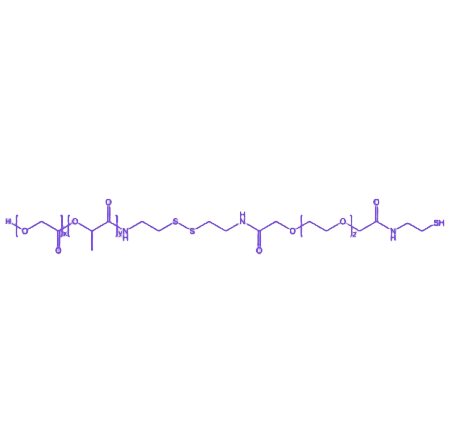 分子结构中引入的双硫键(SS)赋予材料环境响应性降解特性,可在特定生理条件下发生断裂,实现药物的控释或载体的降解。末端修饰的巯基(SH)则为材料提供了表面功能化位点,便于与其他生物分子或靶向配体偶联,拓展其在生物医学领域的应用场景。聚乙二醇(PEG)链段的引入可有效改善材料的亲水性和生物相容性,减少非特异性蛋白质吸附,提升材料在体内的循环稳定性。