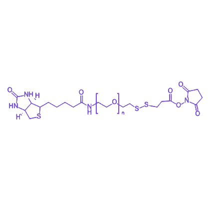 Biotin-PEG-SS-NHS是一种具有多官能团修饰的聚乙二醇衍生物,其分子结构通过聚乙二醇链将生物素、二硫键(SS)和N-羟基琥珀酰亚胺(NHS)酯基团进行有序连接,兼具靶向结合、环境响应性及生物偶联功能,在生物医学研究与药物研发领域具有重要应用价值。