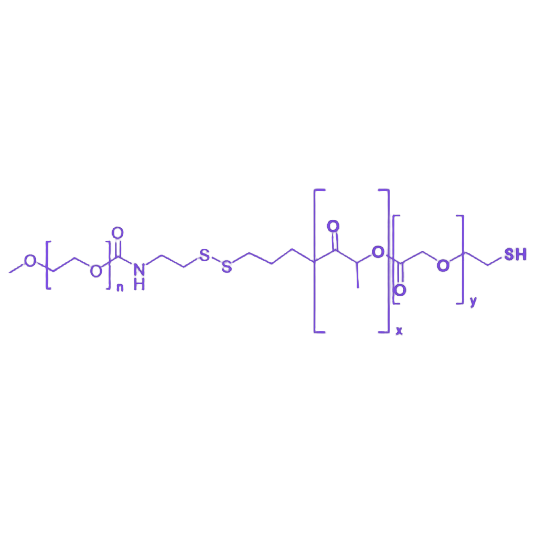mPEG-SS-PLGA-SH是一种具有多重功能特性的生物医用聚合物,其设计整合了亲水性、刺激响应性、生物降解性及化学修饰活性,在药物递送系统中展现出优异的应用潜力。该聚合物通过各组成单元的协同作用,实现了药物水溶性提升、循环时间延长、靶向控释及生物安全性的综合优化。