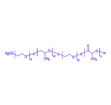 Poly(ethylene oxide)-b-poly(propylene oxide)-b-poly(ethylene oxide)-b-poly(lactide)(简称 PEO-b-PPO-b-PEO-b-PLA)是一种整合生物可降解性、两亲性、温度响应性及生物相容性的先进四嵌段共聚物,通过融合普朗尼克(Pluronic, PEO-PPO-PEO)与聚乳酸(PLA)的结构优势,构建了功能协同的多功能材料平台。其分子设计基于各嵌段的明确分工与协同作用,形成"可降解核-温敏桥-隐形壳"的独特架构,在纳米医学、组织工程及绿色材料领域展现出显著应用潜力。