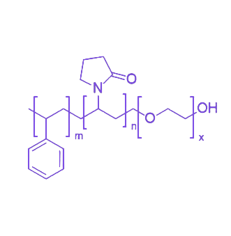 PS-PVP-PEO 是一种由聚苯乙烯(PS)、聚乙烯吡咯烷酮(PVP)和聚环氧乙烷(PEO)构成的 三元共聚物,其设计理念在于通过分子结构的协同效应,整合三种聚合物的核心性能优势。该共聚物既保留了 PS 的 刚性疏水性及优异 加工性能,又融合了 PVP 的 水溶性生物相容性络合能力,同时兼具 PEO 的 亲水性柔韧性润滑性,形成一种多功能集成的高分子材料体系。