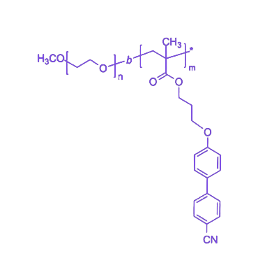 Poly(ethylene oxide)-b-poly(3-[4'-cyanobiphenyl-4-yloxy]propyl methacrylate)(PEO-b-P3CBPM)是一类兼具双亲性自组装特性与液晶基元智能响应性能的功能性嵌段共聚物,由亲水性聚环氧乙烷(PEO)链段与含氰基联苯介晶基元的疏水性聚甲基丙烯酸酯(PCBPMA)链段通过共价键连接构成。其分子设计核心在于利用PCBPMA嵌段中悬挂的氰基联苯基团在特定温度区间形成有序液晶相,使材料同时具备光学各向异性与外界刺激响应能力,在光电功能材料与生物医用领域展现出多维度应用潜力。