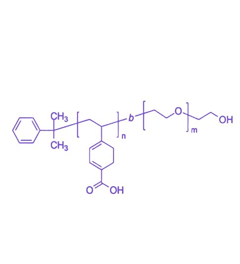 P(VBA)-b-PEO是由4-乙烯基苯甲醛(VBA)与聚乙二醇(PEO)构成的嵌段共聚物,其核心优势在于VBA片段的高反应性与PEO链段的亲水性、生物相容性的协同作用,赋予材料自组装行为与功能化潜力,在功能高分子及生物医用领域具有重要应用价值。