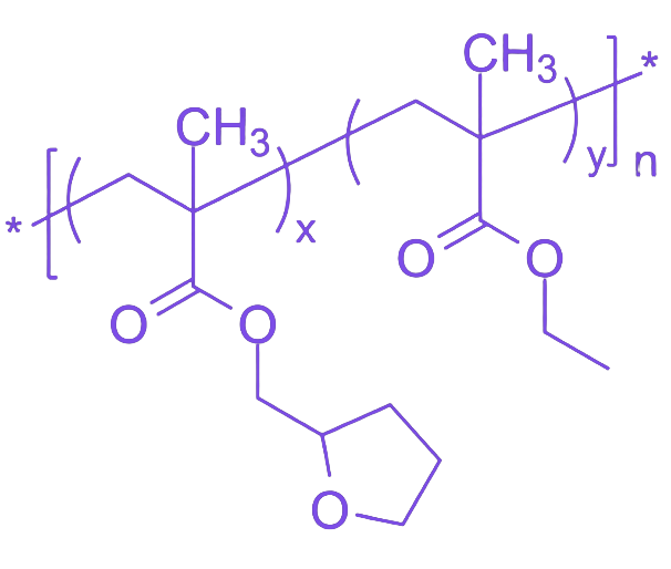 聚(四氢糠基甲基丙烯酸酯-共-甲基丙烯酸乙酯)无规共聚物是通过分子设计将含环状醚结构的四氢糠基甲基丙烯酸酯(THFMA)与提供柔韧性和疏水性的甲基丙烯酸乙酯(EMA)单体单元结合的功能性丙烯酸酯类共聚物,其物理化学性质介于两种单体均聚物之间,构成可调控的聚合物平台。通过精准调控两种单体的投料比例,可实现对共聚物关键性能的连续调节,在涂料油墨、电子工业、胶粘剂及膜科学等领域具有广泛应用前景。