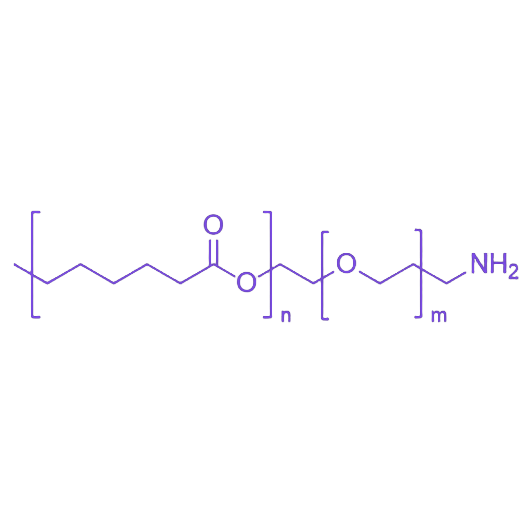 该共聚物的分子结构特征表现为:PCL链段作为疏水区,呈现线性或支化拓扑结构,赋予材料良好的力学性能与生物可降解特性;PEO链段作为亲水单元,显著提升聚合物在水溶液中的分散稳定性与生物相容性;末端修饰的氨基基团可通过与NHS酯、异氰酸酯等基团的共价反应,实现靶向分子偶联或表面功能化修饰。