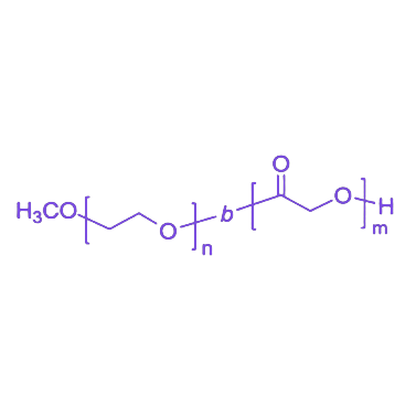 Poly(ethylene oxide)-b-poly(glycolide)(PEO-b-PGA)是一种由亲水性聚环氧乙烷(PEO)链段与疏水可降解聚乙交酯(PGA)链段构成的双亲性嵌段共聚物,兼具生物可降解性与生物相容性,在生物医用领域展现出独特应用价值。 该共聚物通过PEO链段与PGA链段的协同作用实现性能优化:PEO链段赋予材料良好的亲水性、生物相容性及抗蛋白吸附特性,而PGA链段作为已知结构最简单的线性脂肪族聚酯,具备高度结晶性、较快降解速率及优异力学强度,其降解终产物为水和二氧化碳,无任何毒性残留。相较于聚乳酸(PLA)、聚己内酯(PCL)等可降解聚酯,PGA的快速降解速率与高力学强度使其在短期支撑与快速降解需求场景中具有显著优势。 在应用层面,PEO-b-PGA可通过自组装形成具有核壳结构的纳米颗粒,其中疏水PGA核可高效包载药物分子,亲水PEO壳则提供“隐形”效果以延长体内循环时间,适用于短效药物递送系统;同时,其可调控的降解特性与力学性能使其成为临时性组织工程支架的理想选择。通过精准调控PEO与PGA的链段长度比例,可实现对材料降解速率、药物释放动力学及力学性能的精细调节,从而满足不同临床应用场景的个性化需求。