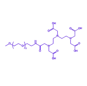 mPEG-DTPA 是由甲氧基聚乙二醇(mPEG)与二乙三胺五乙酸(DTPA)通过化学键连接形成的功能化聚乙二醇衍生物,兼具 mPEG 的水溶性、生物相容性及 DTPA 的金属离子螯合能力,广泛应用于核医学成像、放射性药物载体及金属解毒领域。