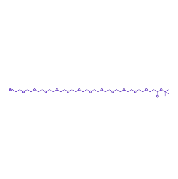 Br-PEG12-COOtBu(中文名称:溴基-十二聚乙二醇-叔丁酯,英文通用名:Bromo-PEG12-t-butyl ester)是一种高纯度(≥95% HPLC)十二聚乙二醇类双功能衍生物,作为有机合成与生物医学领域的关键中间体,其分子结构同时具备溴代反应基团、叔丁基酯保护基及超长柔性PEG链段,可通过亲核取代反应、选择性脱保护及空间构象调节实现多功能分子构建。